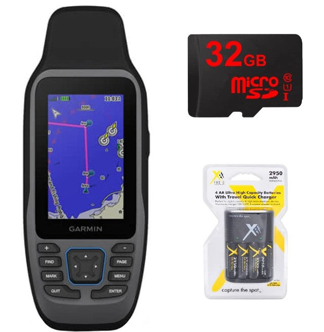 • BUNDLE INCLUDES: Garmin GPSMAP 79sc Marine Handheld Preloaded With BlueChart g3 Coastal Charts | 4x Rechargeable AA Batteries w/ Charger | 32GB MicroSD High-Speed Memory Card.