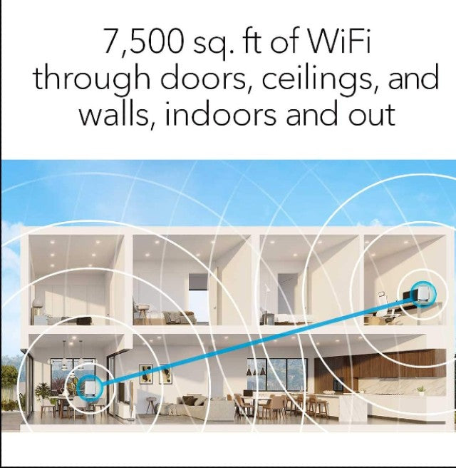 • Coverage up to 7,500 sq. ft. and for up to 100 devices. Extend coverage up to 2,500 sq. ft.