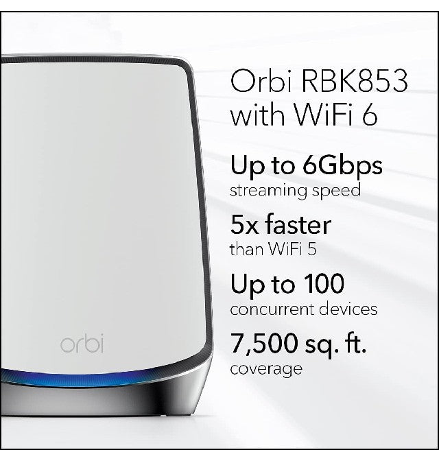 Netgear orbi wifi 6 mesh router, Wi-Fi 6 technology - RBK853-100CNS