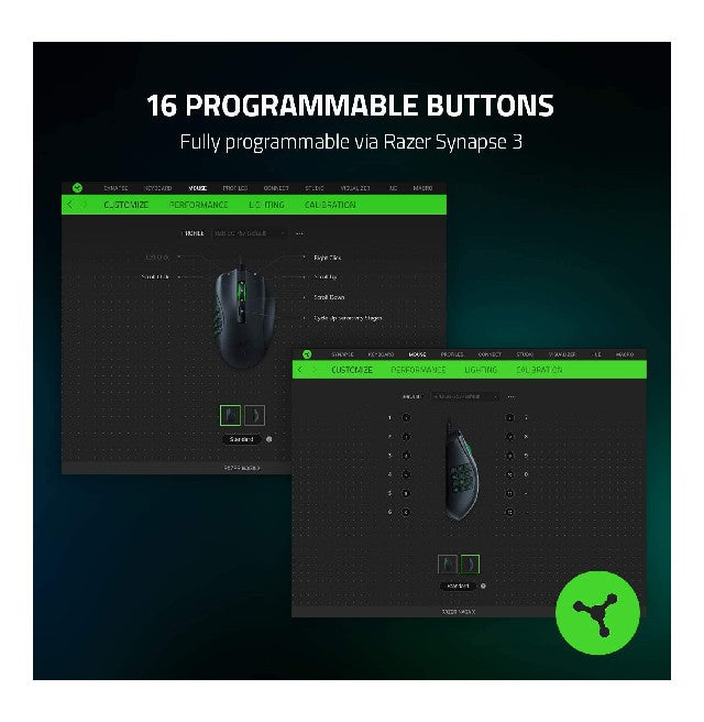 • 16 Programmable Buttons Allows for button remapping and assignment of complex macro functions through Razer Synapse.
