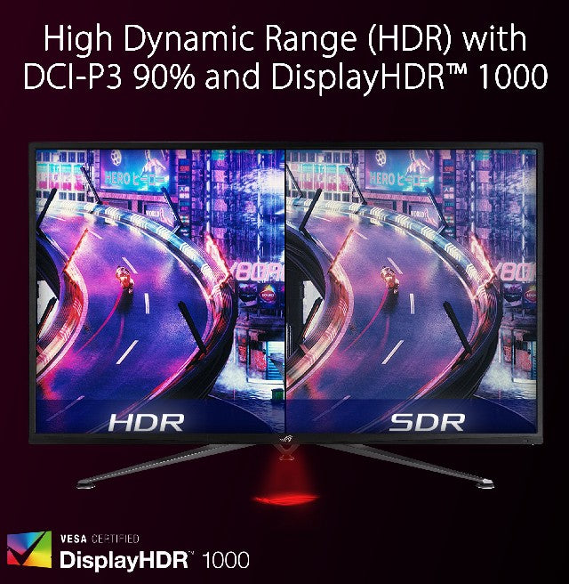 • High Dynamic Range (HDR) technology with DisplayHDR™ 1000 certification and professional-grade 90% DCI-P3 color gamut ensures exceptional contrast and color performance.