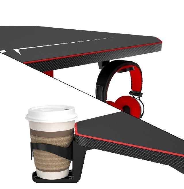 - Wide carbon fiber desktop with waterproof mouse pad.