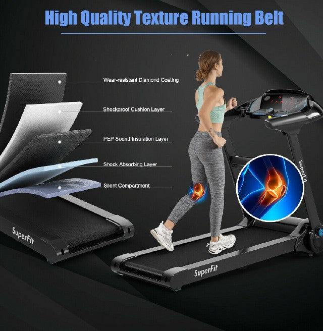 • 5-layer non-slip and shock-absorbing running belt provides effective cushioning for your joints, knees, and ankles.