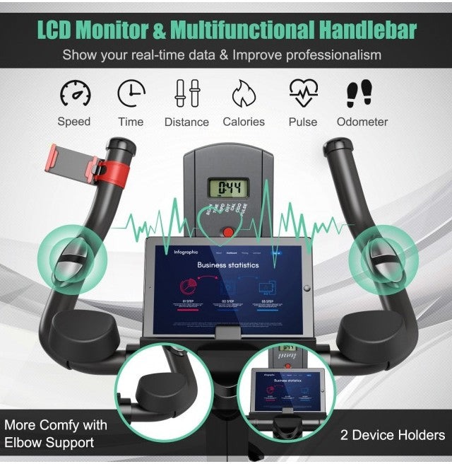 • The exercise bike is equipped with a smooth belt drive system, so that you can strengthen your body power and build your body shape at home without too much noise.