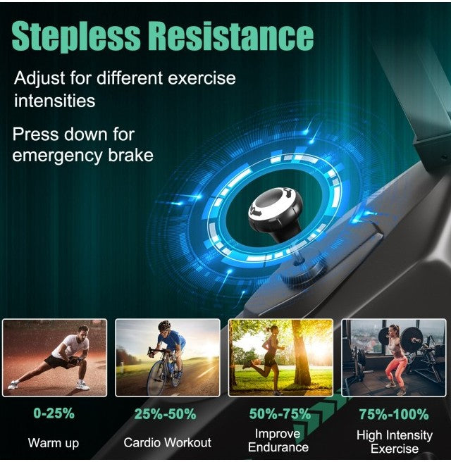 • The adjustable resistance knob allows you to change the training intensity as needed.