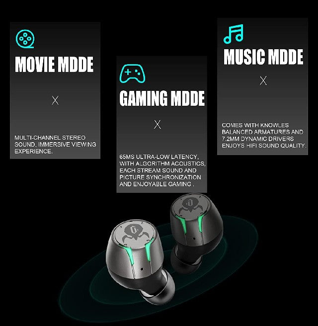 • The Sirius Bluetooth earbuds have three modes to give you the ultimate listening experience - Gaming Mode, Movie Mode, Music Mode